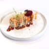 Uramaki con avocado, philadelphia e tartar di tonno piccante,polvere di wasabi,peperoncino e salsa spicy