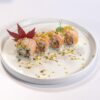 Uramaki con riso di venere, salmone,avocado e sesamo